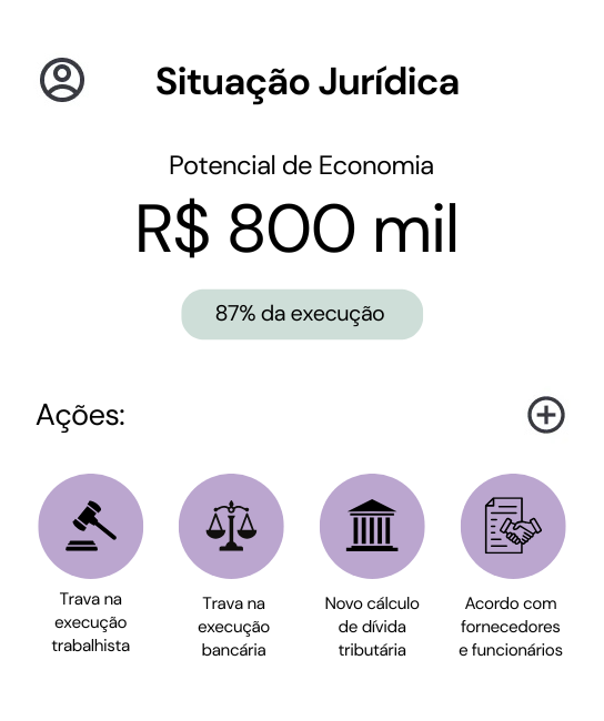 Não medimos o sucesso em pareceres, mas em resultado real. Nossa prioridade é destravar seu fluxo de caixa, renegociar passivos e proteger a continuidade da sua operação.